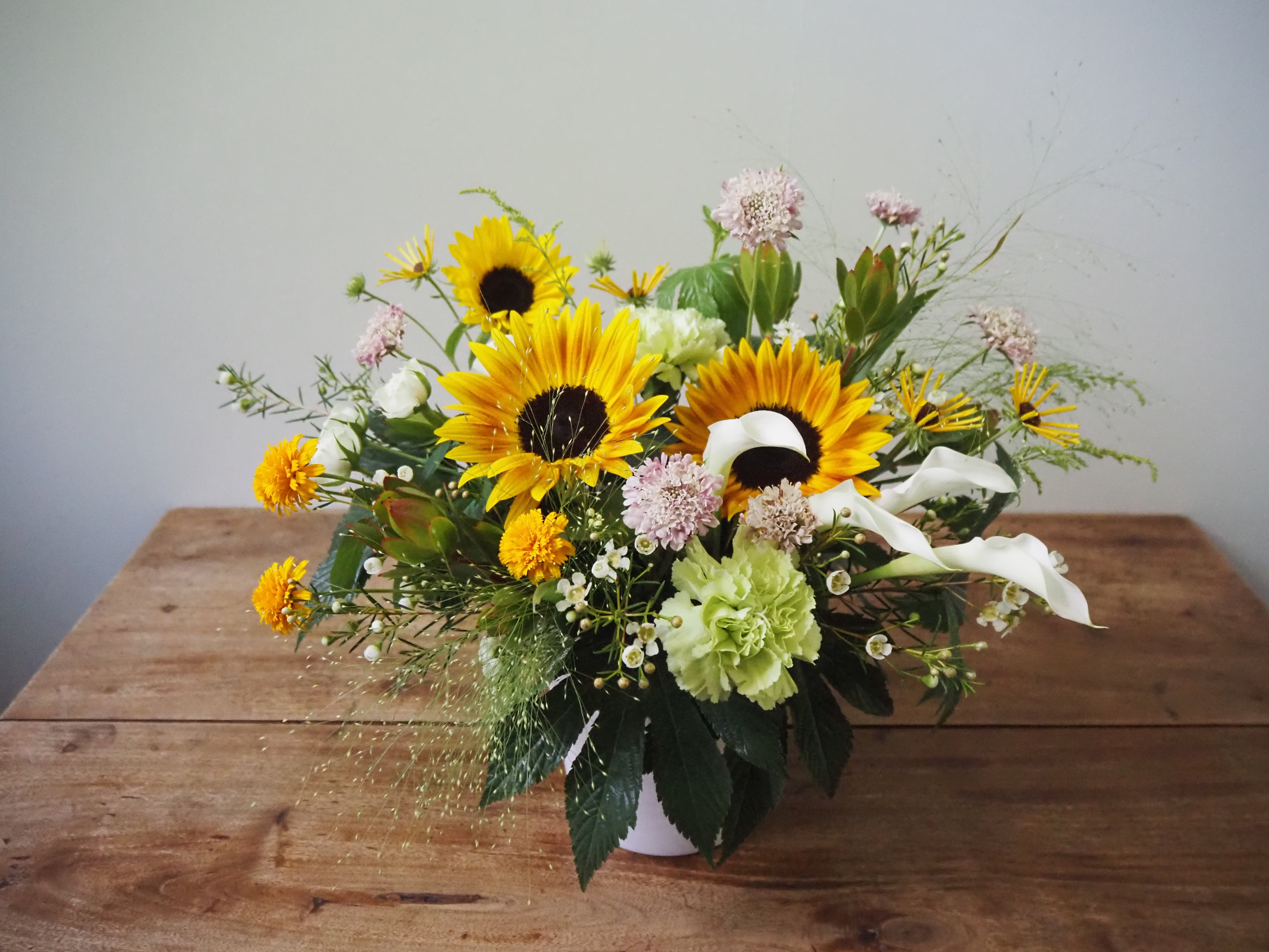季節の花とグリーンで心を込めた贈り物はいかがでしょうか