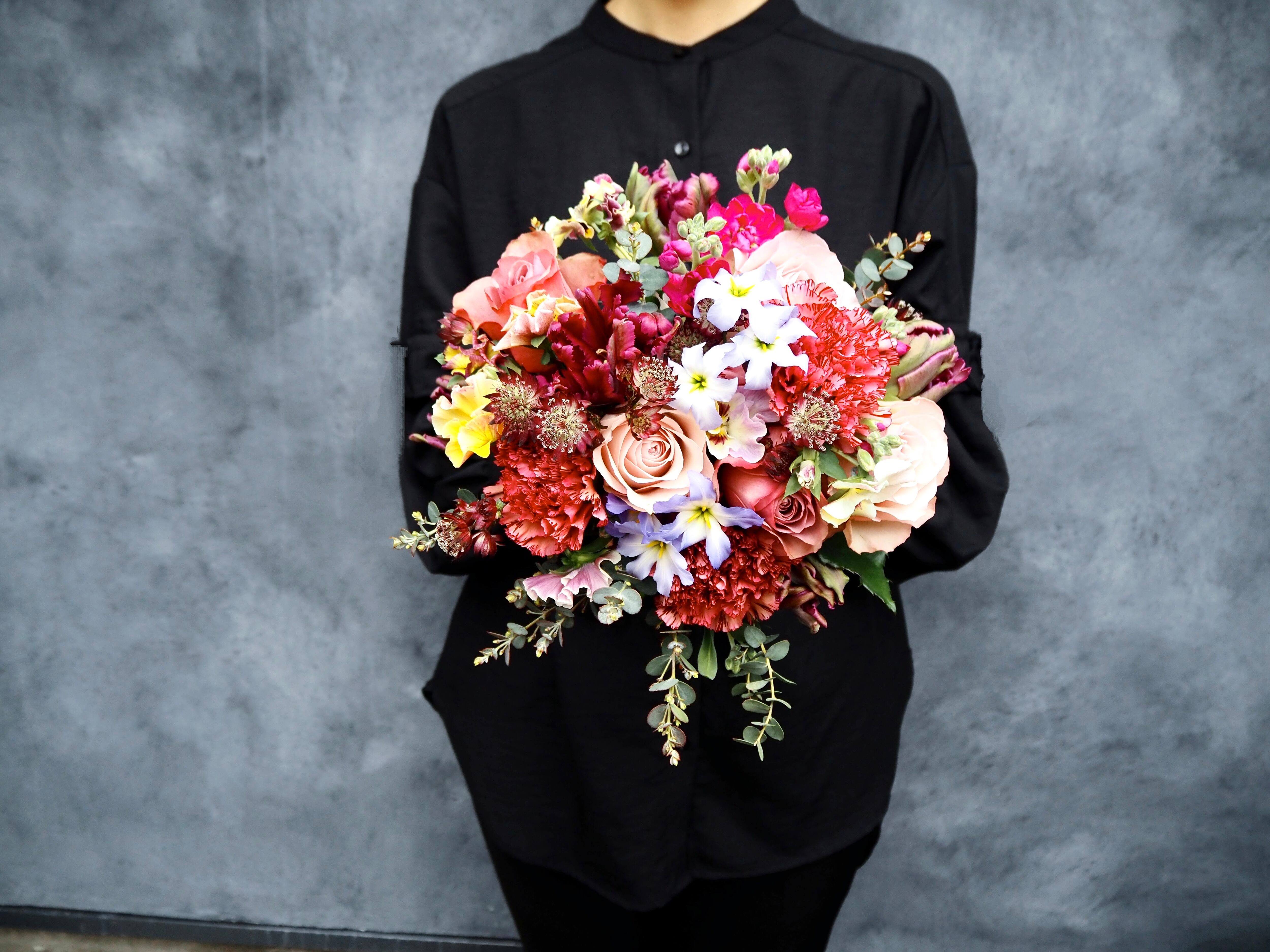 季節に合わせたおすすめの花とグリーンを華やかにお使いしたブーケです。